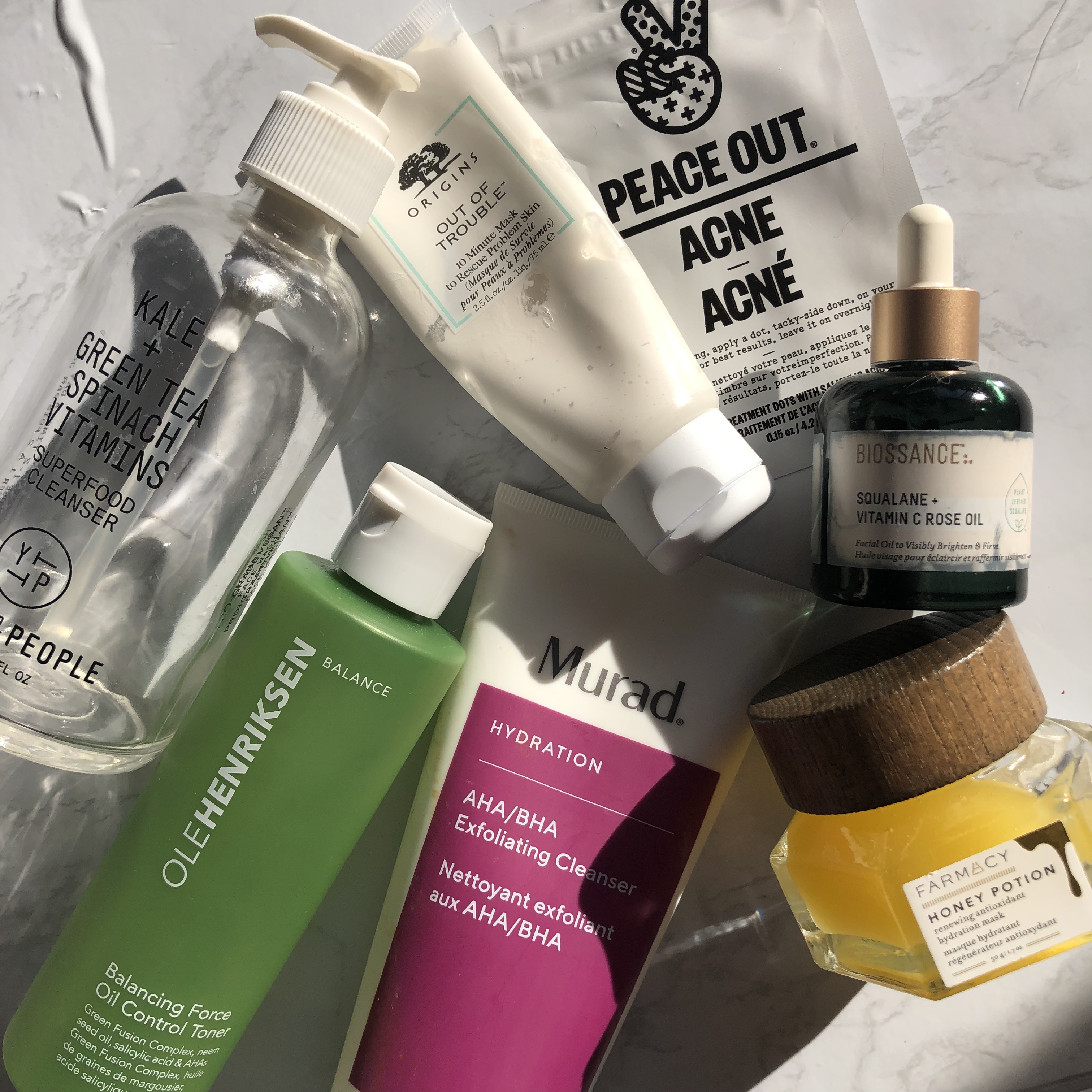 For cleansers, I have three favourites. My cleansing balm is the only thing not pictured above, but I picked the Versed Day Dissolve Cleansing Balm. I loved this balm so much that after I finished it I repurchased it. I don’t currently have it in my collection because I have other balms I’m trying to finish up but I would get this one again. It’s quite oily so it does a great job of dissolving makeup but it doesn’t leave an oily residue on my face. It’s so good that if I’m not wearing a lot of makeup I can skip a second cleanser. And it’s available at the drugstore so it’s a great price! My second cleanser is the Youth to the People Superfood Antioxidant Cleanser. This cleanser was great because it cleaned my skin but didn’t strip it. Whenever I used this regularly I barely had any breakouts. I’m currently using a different cleanser but I don’t like it as much as the Youth to the People cleanser. I will be repurchasing in the future. The final cleanser is the Murad AHA/BHA Exfoliating Cleanser. I treat this more as an exfoliator, using it only about once or twice a week. This cleanser has both physical and chemical exfoliants so it helps clean away any dead skin. This helps keep my skin feeling smooth and soft.