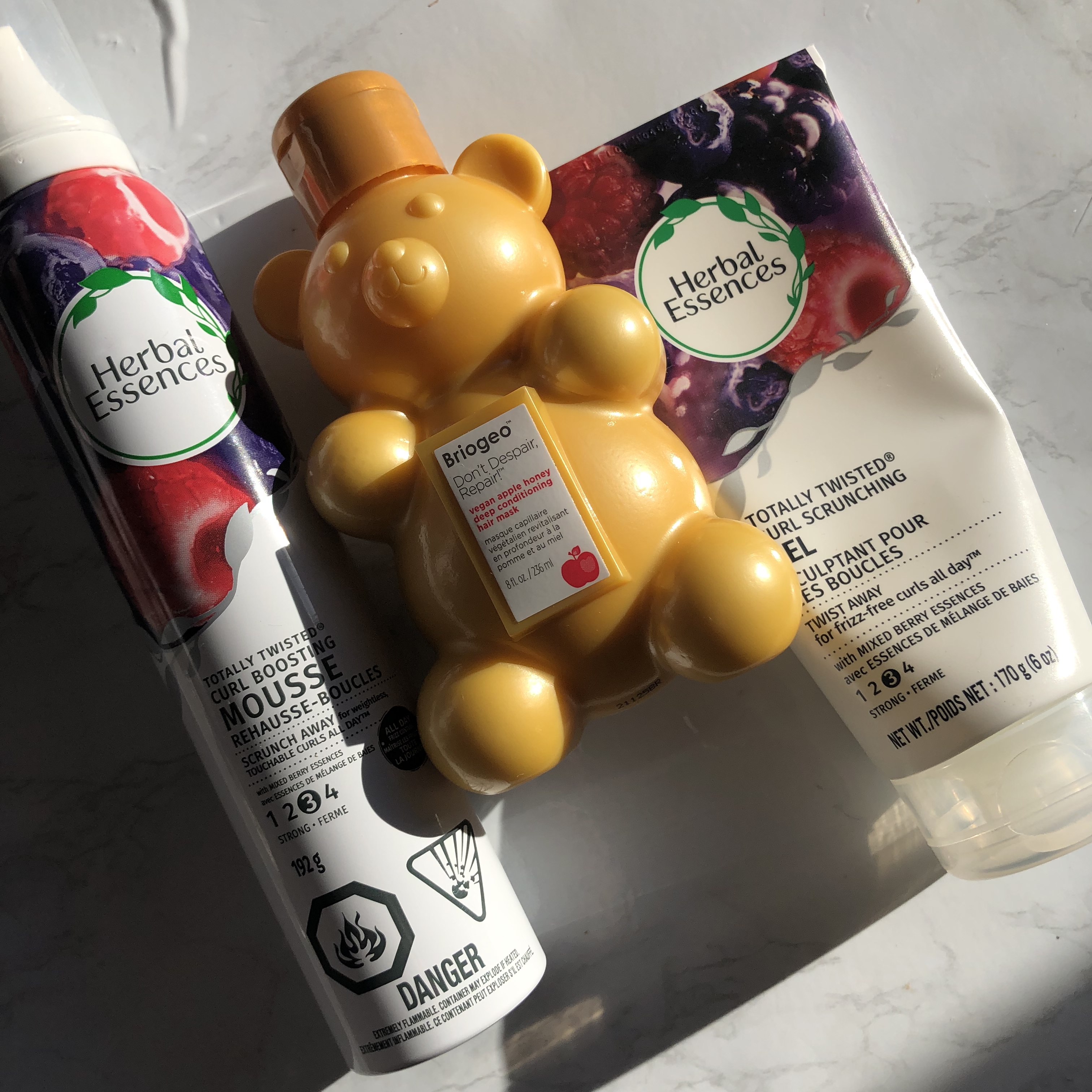 The two products that have transformed my curls are the Herbal Essences Totally Twisted Curl Scrunching Gel and Totally Twisted Curl Boosting Hair Mousse. The mousse adds definition to my curls and the gel helps the curls keep their shape. My hair is soft and bouncy and shinier. The products are Curly Girl Approved AND available at the drugstore. Herbal Essences, you are never allowed to discontinue these products.