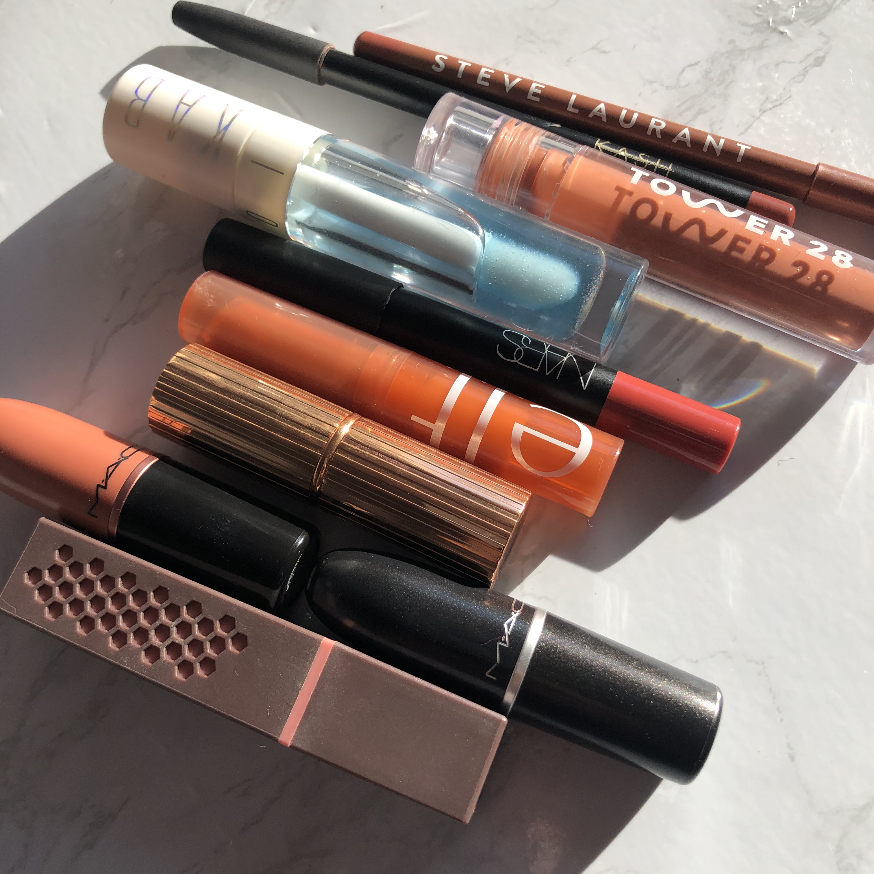 I’m gonna breeze through my lip favourites because I do into detail with swatches in my Youtube video, so check that out if you want more info. But my lip liner favourites are the Steve Laurant Chic Lip Liner and Kash Beauty Rose Nude Lip Liner. Both are wooden pencils and I find that they are the perfect balance between creamy and stiff. For matte lipsticks, I picked the MAC Matte Lipsticks in “Down to an Art” and “Velvet Teddy”, Charlotte Tilbury Matte Revolution Lipstick in Pillow Talk and Nars Velvet Matte Lip Pencil in Dolce Vita. My creamier/shinier lipstick favourites I picked the Burt’s Bees Satin Lipstick in Blush Basin and ELF Sheer Slick Lipstick in Golden Pear. Finally, for lip gloss I picked the Tower28 ShineOn Milky Lip Jelly Gloss in Cashew and the KAB Cosmetics Hydrating Lip Oil.