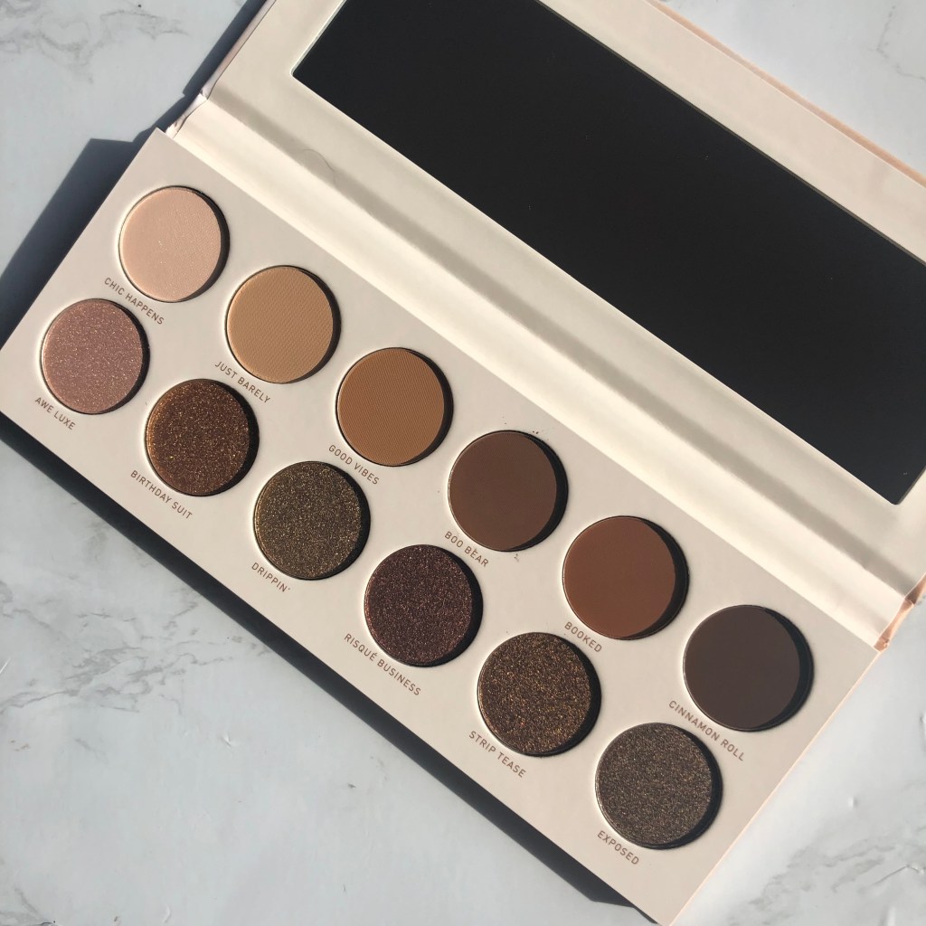 I think there is a good range of matte shades. There is a light shade for me to set my eyeshadow primer. There are some lighter shades for the crease and some darker shades to deepen the crease. The shade “Cinnamom Roll’ is the perfect dark shade for doing wing liner. My issue is that all the shimmer shades are quite deep and rich. This is perfect for evening looks but just too much for me for everyday use. I also find the shade “Awe Lux” a weird addition. All the other shades are very warm toned whereas “Awe Lux” is pink and doesn’t match as much.