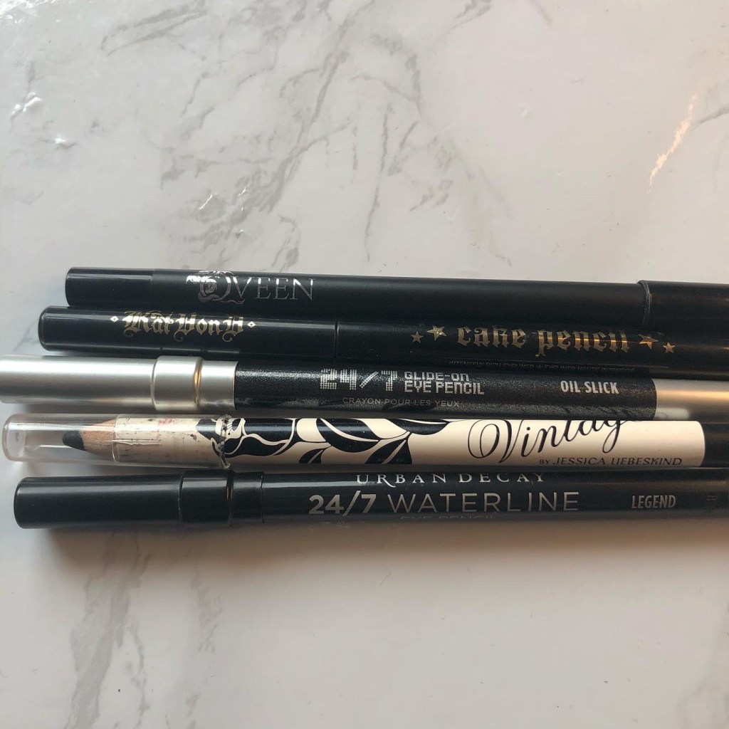 The Urban Decay Waterline and the Vintage eyeliner performed pretty poorly and I wouldn’t recommend them. I will be getting rid of those as well at the Urban Decay glitter eyeliner because I couldn’t stand those glitter particles in my eyes. But like I mentioned, I have other Urban Decay Glide-On liners that work well, so it could just be that shade – and that could be why it was discontinued.